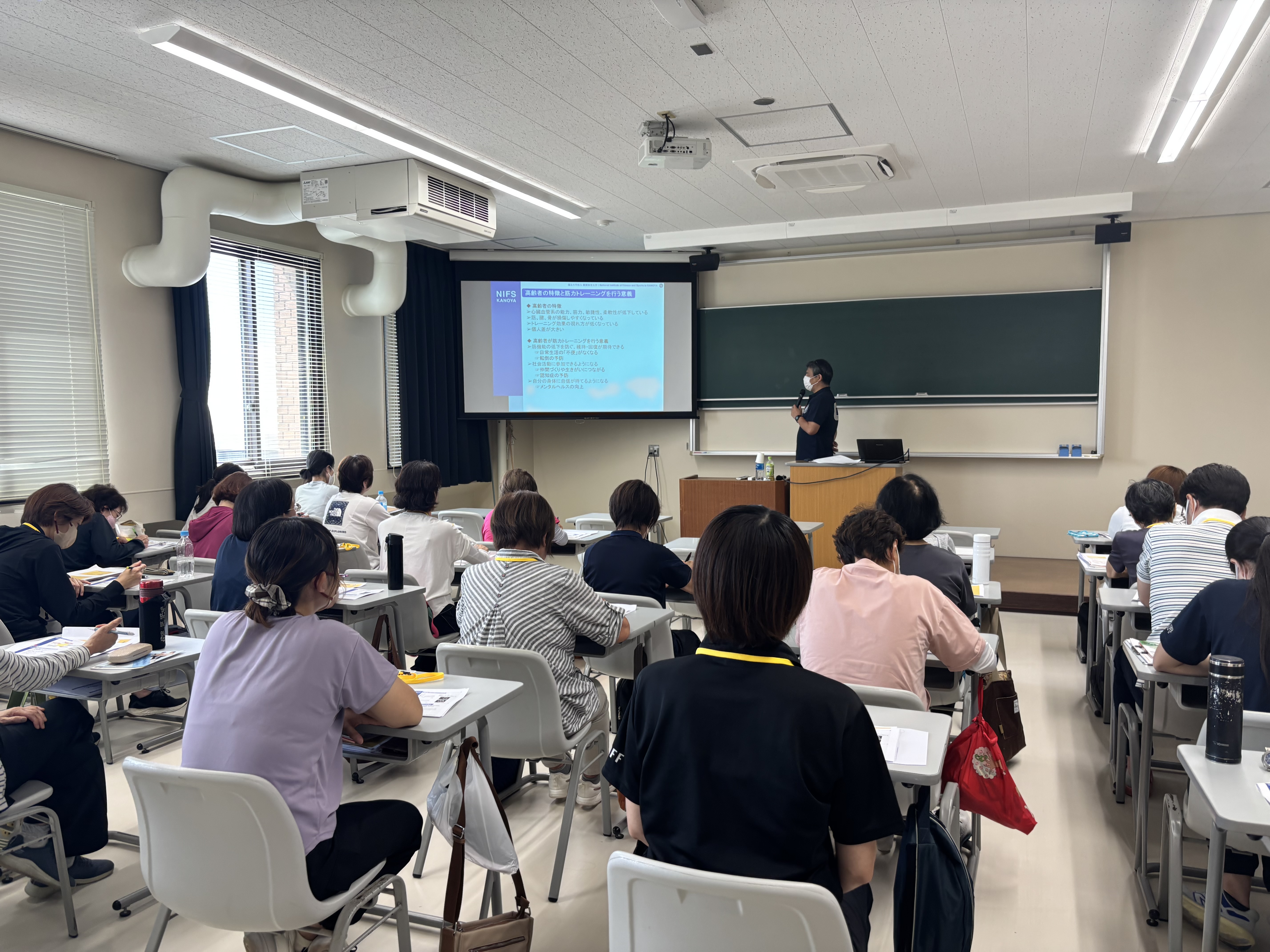 今年度は、県内から介護・福祉・行政関係者を中心に、貯筋運動の普及に意欲的な皆様にご参加いただきました。講義では、貯筋運動の理論や指導方法について、わかりやすく丁寧な解説がありました。 参加者の皆様は、熱心にメモを取りながら耳を傾け、講師に質問する姿も見られ、学びへの意欲が感じられました。演習では、実際の指導場面を想定した実技指導が行われました。